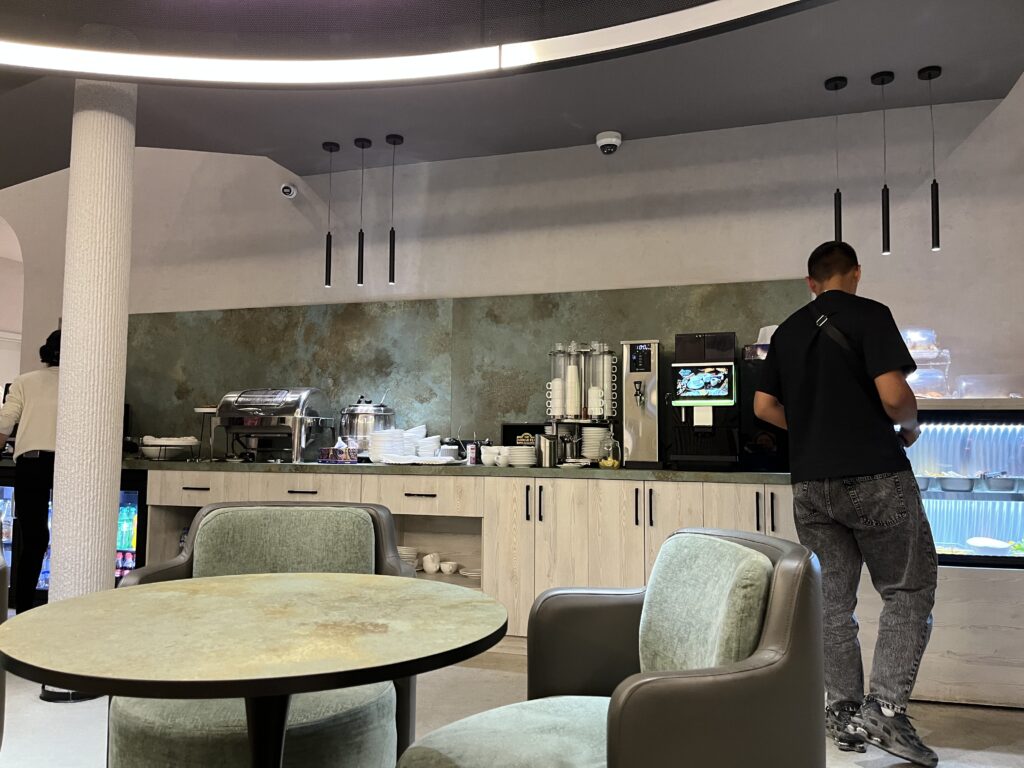 Anjir Business Loungeの食事・ドリンクサービスとラウンジ内の雰囲気